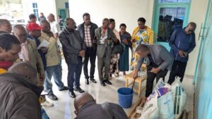 Emphasis was placed on proper sand disinfection using sodium hypochlorite to eliminate pests and diseases, followed by correct rinsing and handling to avoid re contamination. Trainers explained the materials required for sand-ponic production, including tanks, piping, pots or beds, and simple gravity fed irrigation systems that do not require electricity.
